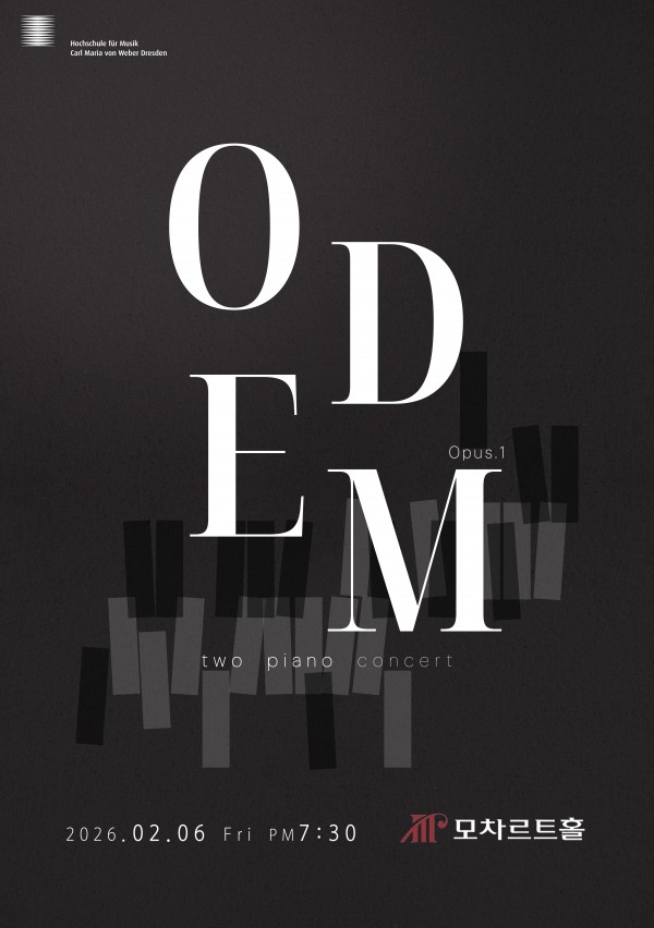 공연안내 본문 공연명 ODEM two piano concert 공연일자 20260206 공연시간 19 시 30 분 공연장소 모차르트홀 공연주최 공연가격 전석 초대 공연문의 공연내용 목록